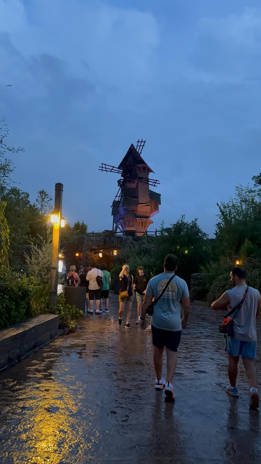 Next, we headed to Dark Universe, where we prioritized Curse of the Werewolf, another outdoor attraction that could shut down in bad weather. It’s a family-friendly coaster themed around werewolves, combining dark settings and surprise elements. Less intense than the big coasters, but still exciting. It did make me a bit dizzy from all the spins, and we even “saw someone turn into a werewolf.” Just kidding!