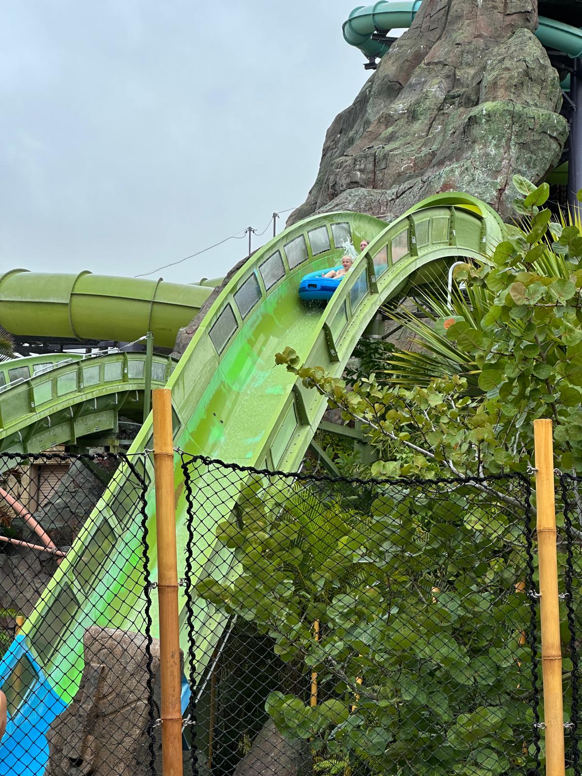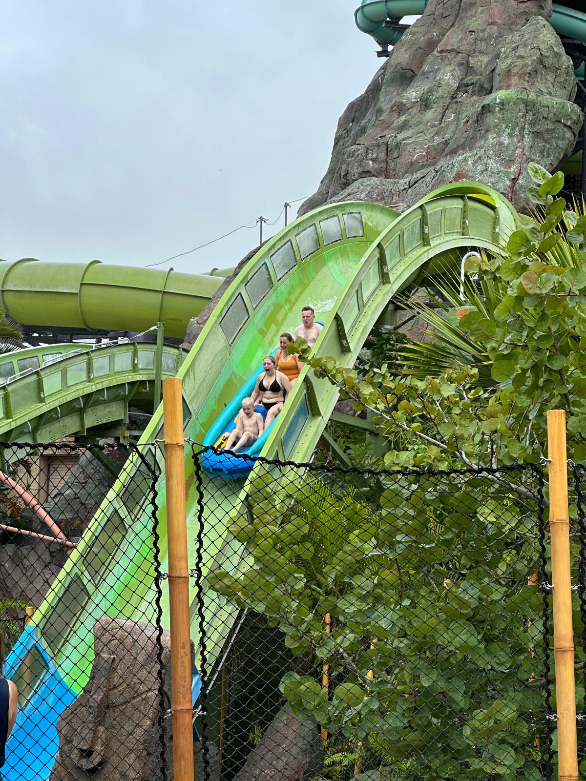 We started with the legendary Krakatau Aqua Coaster, and rode it three times. It’s impossible not to fall in love with this fusion of roller coaster and water slide that races through a glowing volcano. Then came Kala & Tai Nui and the twisting tubes of Taniwha, before rafting together on Maku / Puihi Round Raft Rides.